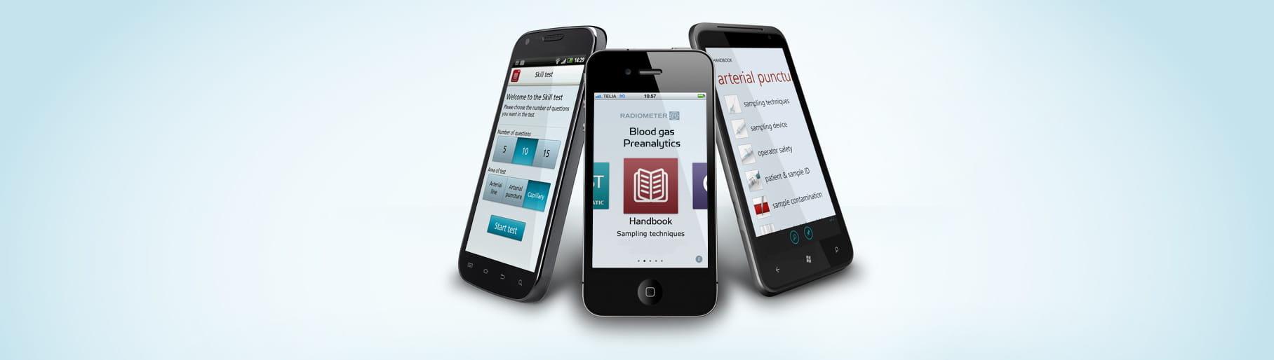 该应用的主要特色在于,手册菜单包含:显示如何通过动脉穿刺,动脉导管或毛细血管采样正确采集血气样本。手册还描述了采样过程中或采样后发生的几种误差类型,并给出了如何避免这种分析前误差的技巧。